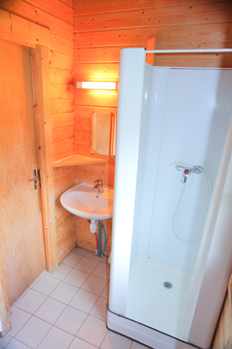 Chalets pouvant accueillir 6  à 7 personnes comprenant chacun une pièce commune, 2 chambres et 1 salle de bain (2 douches, 2 lavabos) et 1 w.c indépendant.